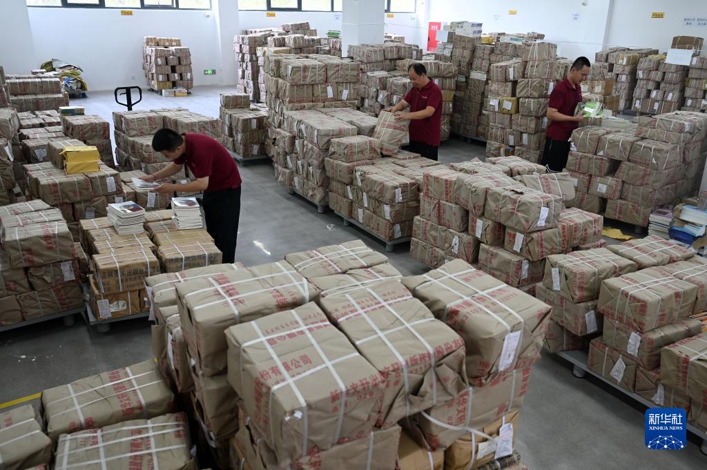 8月21日,四川新華文軒內江市東興分公司工作人員在教材倉庫內清點整理新學期教材。