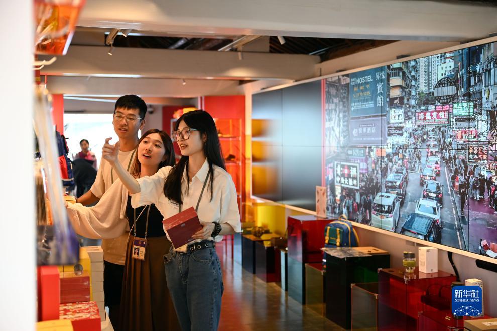 8月21日,參加實習的青年學生在故宮文創香港空間內交流。