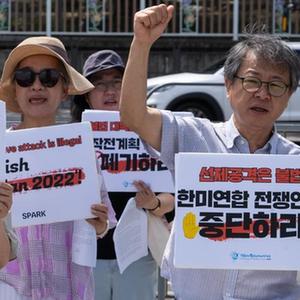 韓國和美國軍隊21日啟動代號為“乙支自由之盾”的聯合軍事演習。韓國民間團體“和平統一開創者”當天在首爾市中心舉行抗議集會,強烈敦促立即停止韓美軍演、緩和半島緊張局勢。