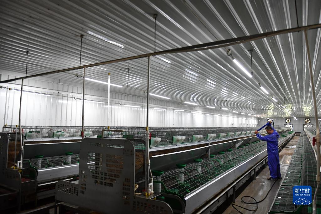 8月21日,工作人員在寧遠縣九疑山兔産業園沖洗兔舍。新華社記者 陳振海 攝