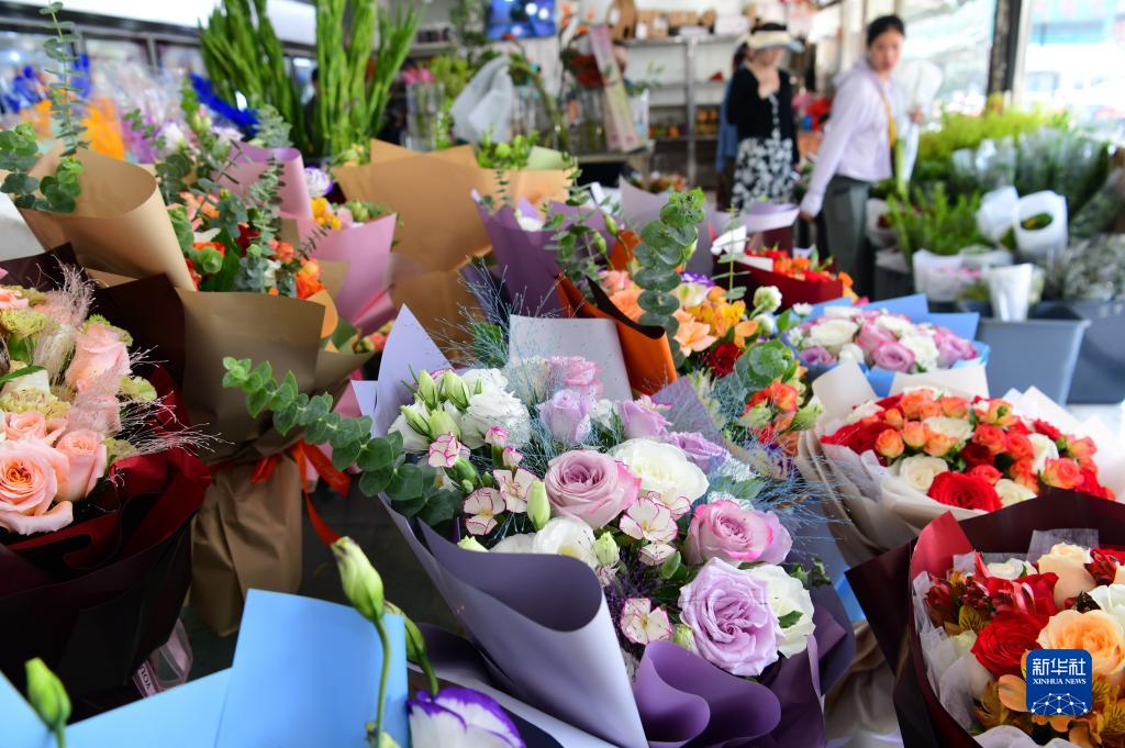 “七夕”將至,鮮花市場呈現俏銷勢頭,不少商家精心準備花卉産品,吸引顧客前來購買。