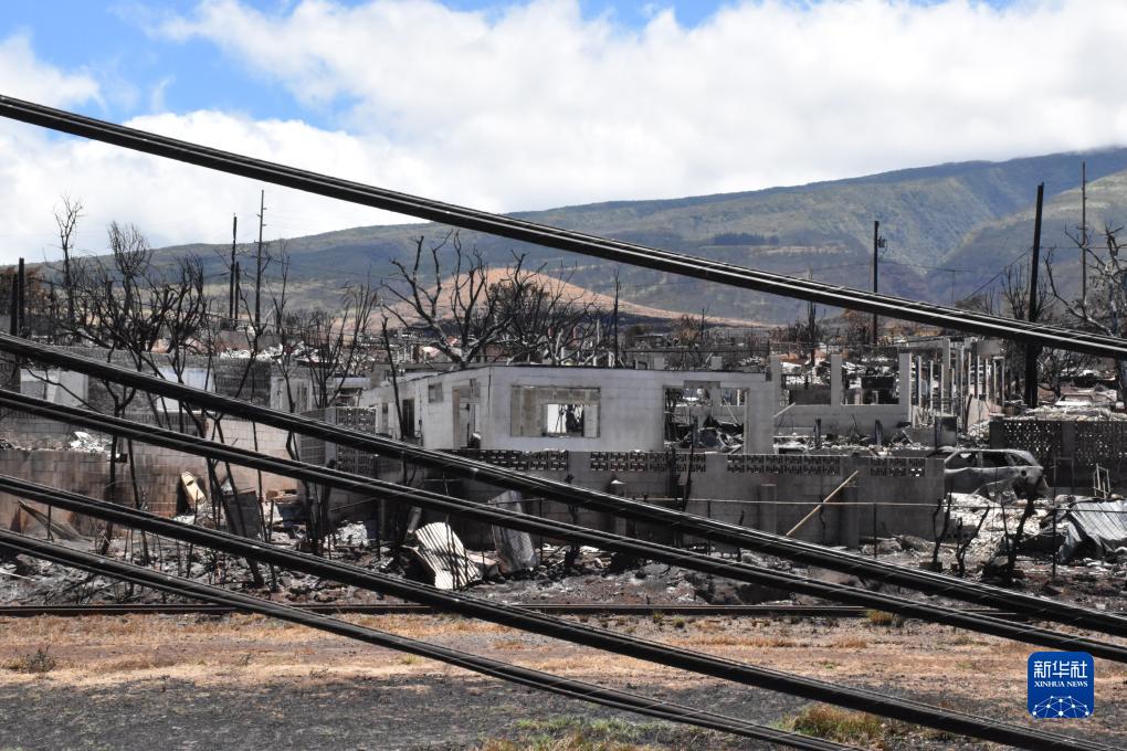 這是8月20日在美國夏威夷毛伊島拉海納鎮拍攝的野火過後景象。