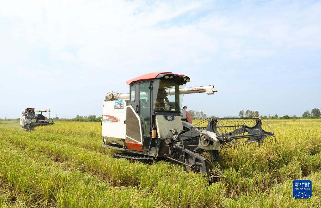 8月21日,在安徽省合肥市肥西縣山南鎮龍嘴村再生稻種植基地,當地農戶搶抓農時收割頭茬再生稻,確保糧食顆粒歸倉。