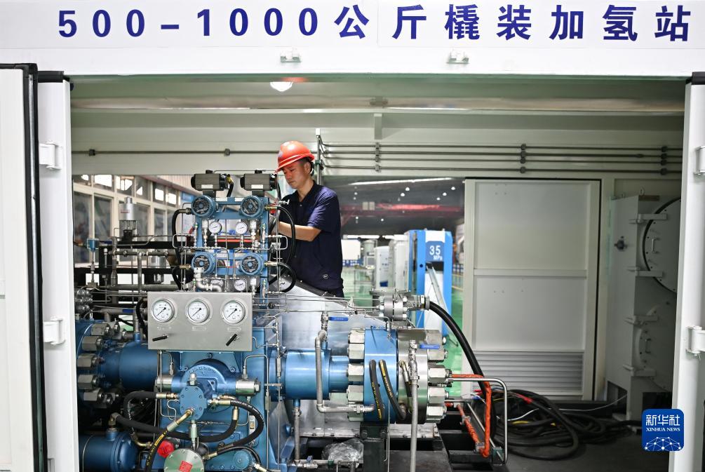 8月21日,工人在唐山市古冶區一家氫能源裝備製造企業生産車間工作。