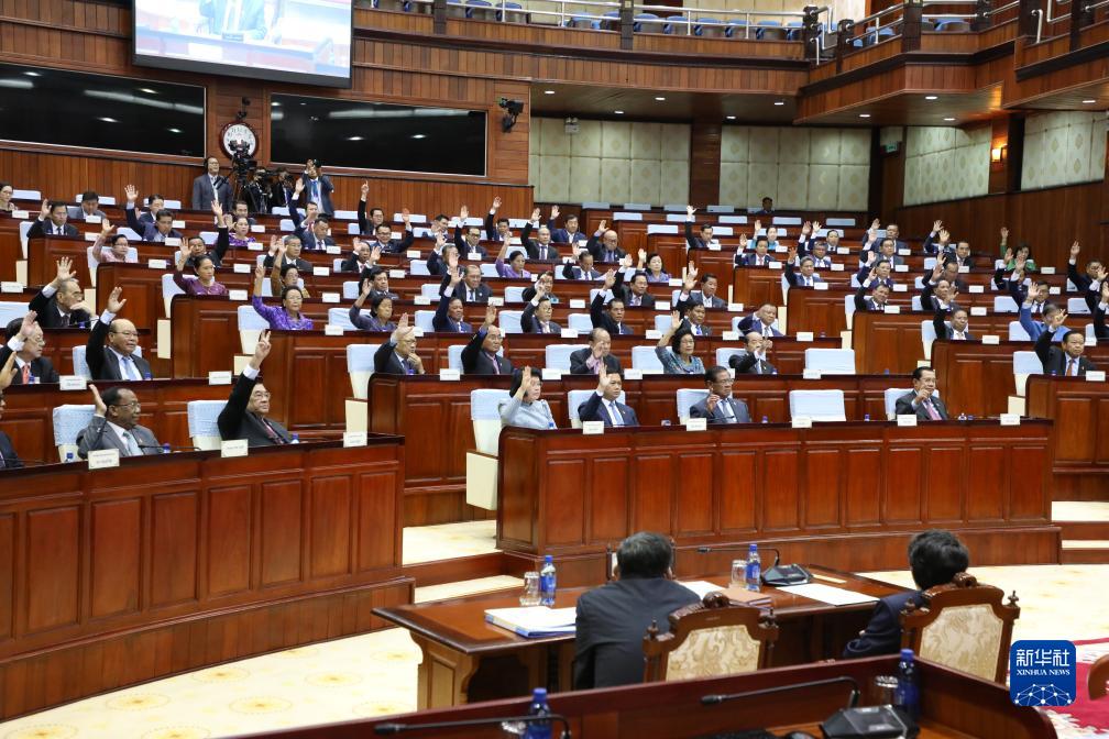 這是8月22日在柬埔寨首都金邊拍攝的柬埔寨第七屆國會第一次會議表決現場。
