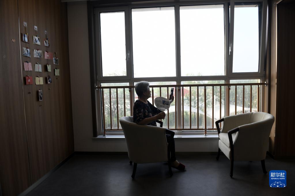 8月21日,老人在位於山東省濱州市沾化區大高鎮國昌怡心園內的護理公寓中欣賞傍晚湖景。