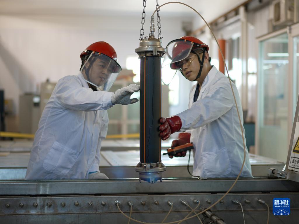 8月22日,工作人員在河北省滄州市孟村回族自治縣河北一塑管道製造有限責任公司靜液壓實驗室進行産品檢測。