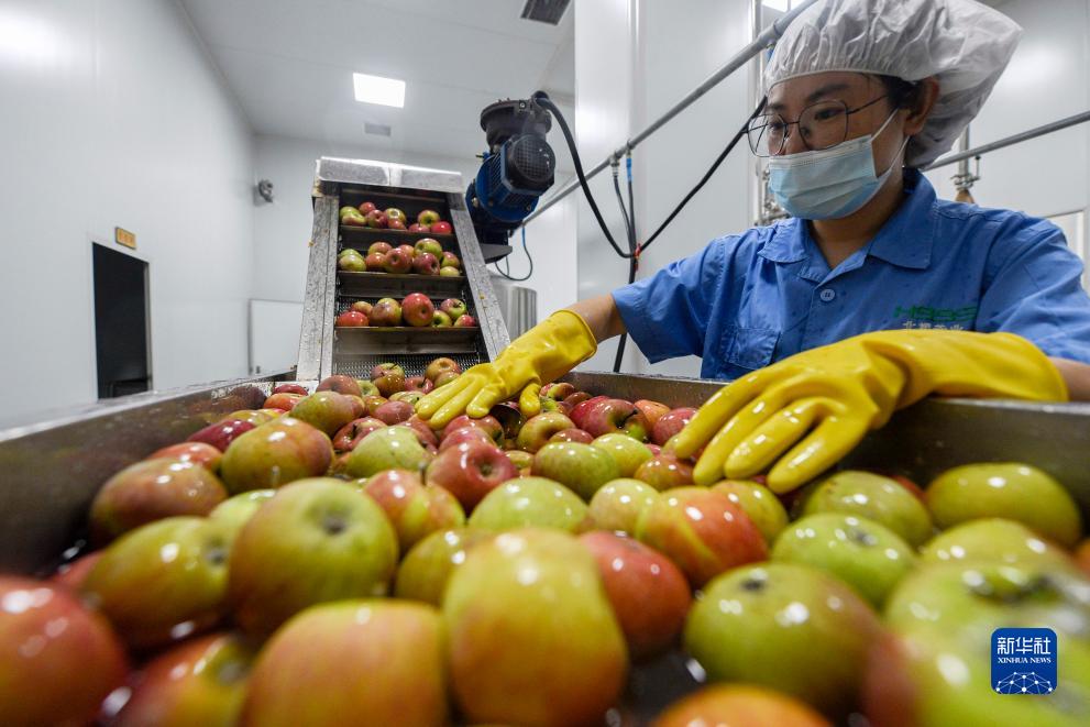 8月22日,在承德縣一家蘋果酒生産企業,工人在壓榨車間清洗國光蘋果。
