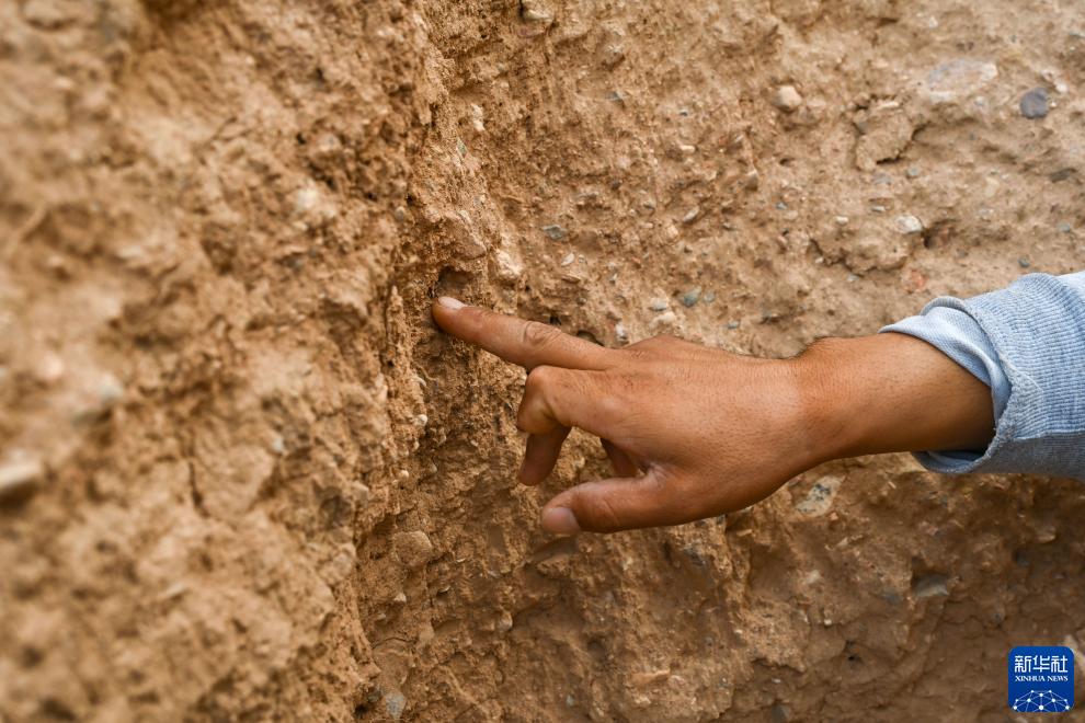 8月20日,董海寧介紹長城墻體修建時用到的芨芨草。