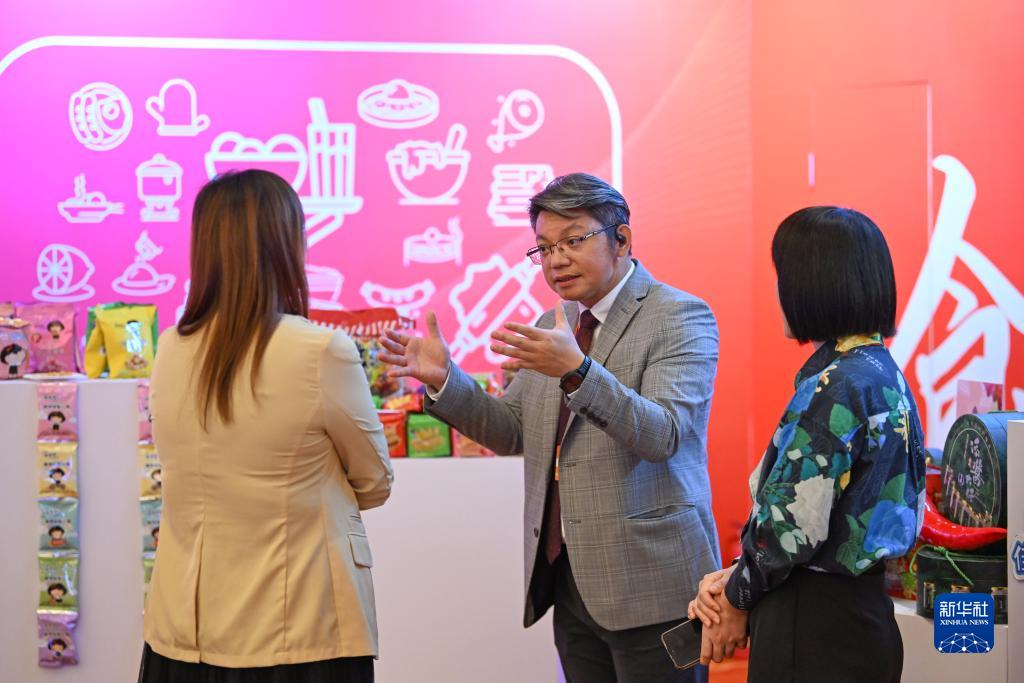 8月22日,嘉賓在2023天津&企新品採購洽談會上交談。