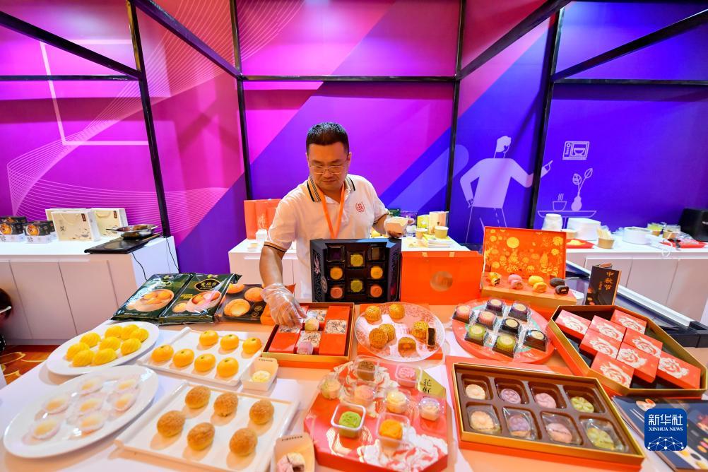 8月22日,參會商在2023天津&企新品採購洽談會上擺放展品。