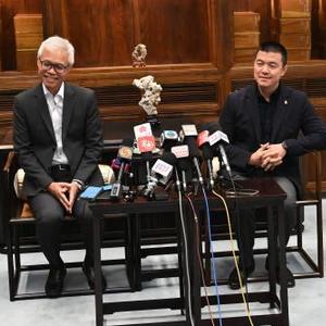 8月22日,故宮博物院常務副院長婁瑋(右)、香港故宮文化博物館館長吳志華在北京故宮博物院接受採訪。