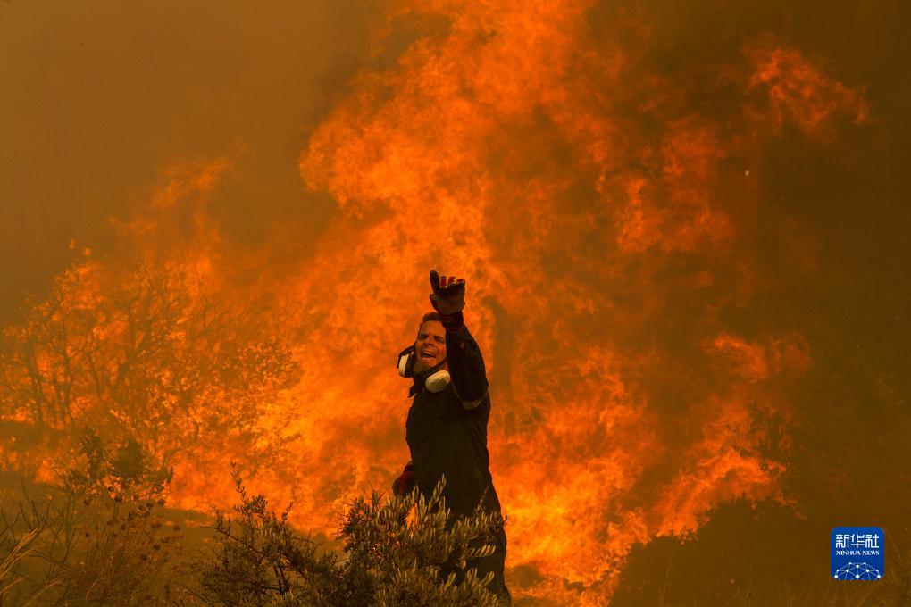 8月22日,消防員在希臘首都雅典附近的查西亞村滅火。