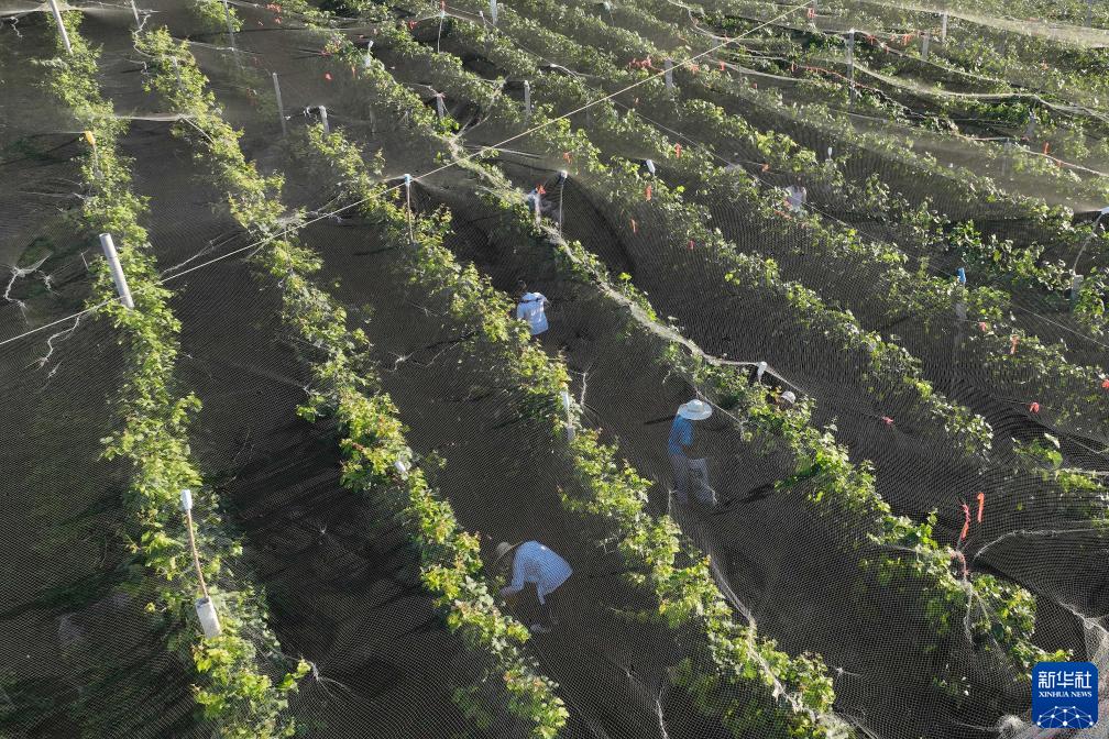 8月22日拍攝的吳橋縣安陵鎮窯廠店村吳橋縣勝彥糧棉種植專業合作社葡萄園(無人機照片)。
