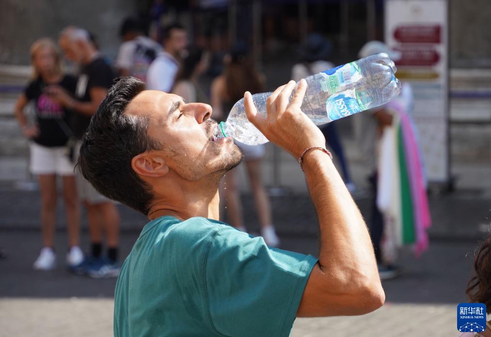 8月22日,一名男子在意大利羅馬街頭喝水。