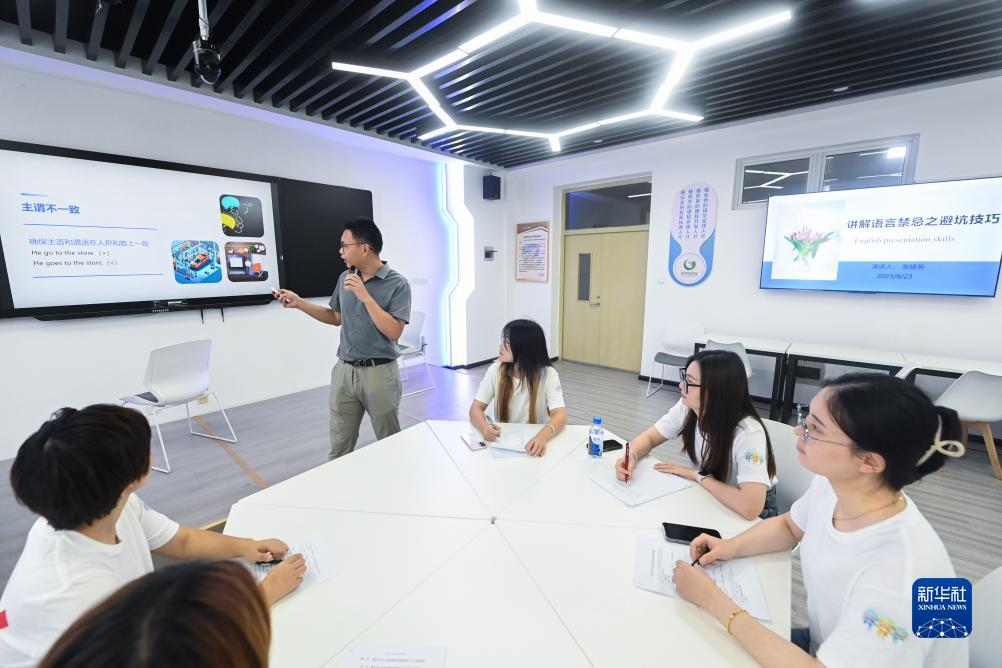 8月23日,導游們在參加“迎亞運”旅游外語課程培訓。