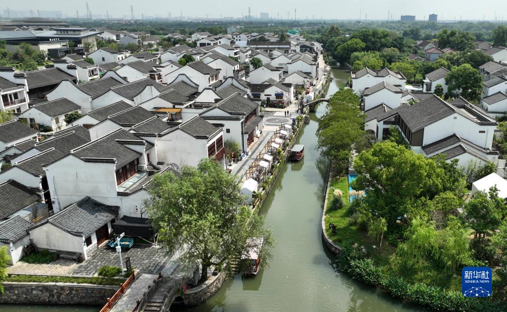 八里店鎮潞村古村落經過改造已成為湖州鄉村旅游首選地(無人機照片,8月23日攝)。