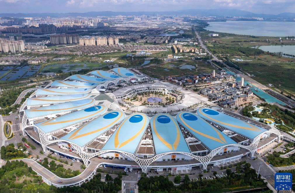 這是第七屆中國—南亞博覽會舉辦地昆明滇池國際會展中心(8月8日攝,無人機照片)。新華社記者 陳欣波 攝