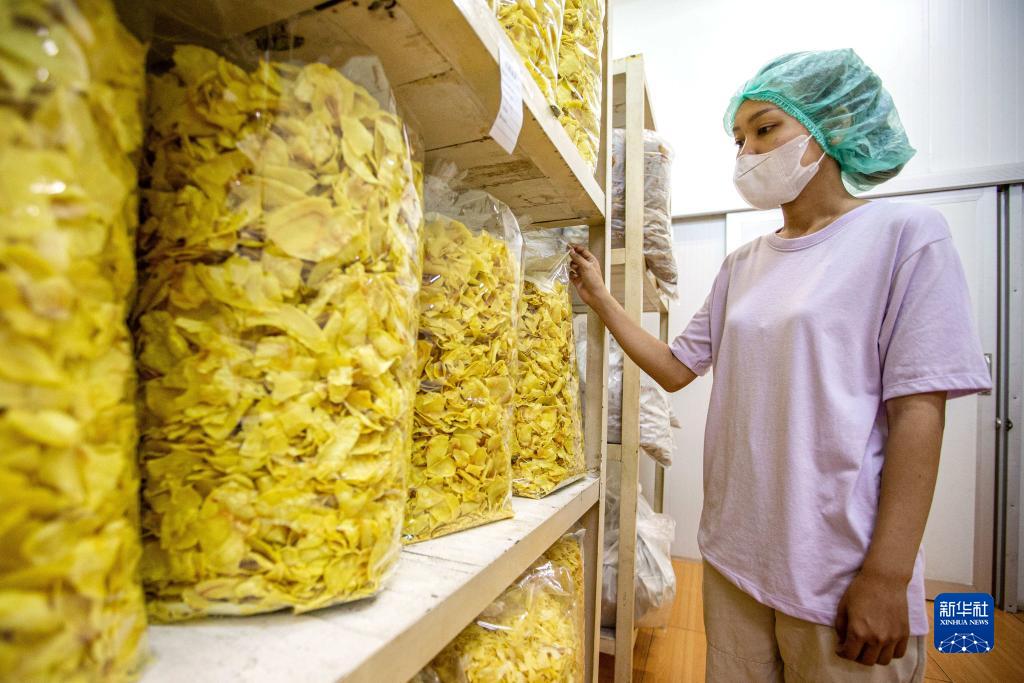 8月17日,在泰國尖竹汶府,尖竹汶果品公司工作人員檢查榴蓮幹。新華社記者 王騰 攝