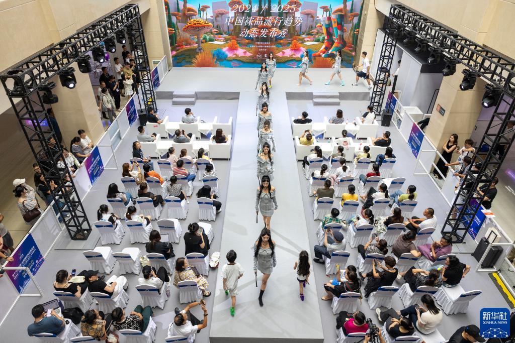 8月23日,模特在襪品流行趨勢發布會上展示産品。