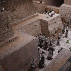 8月23日,游客在秦始皇兵馬俑博物館一號坑遺址參觀。
