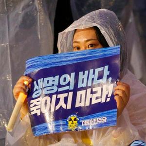 8月23日,在韓國首爾的國會議事堂前,韓國最大在野黨共同民主黨舉行集會抗議日本政府決定啟動核污染水排海。