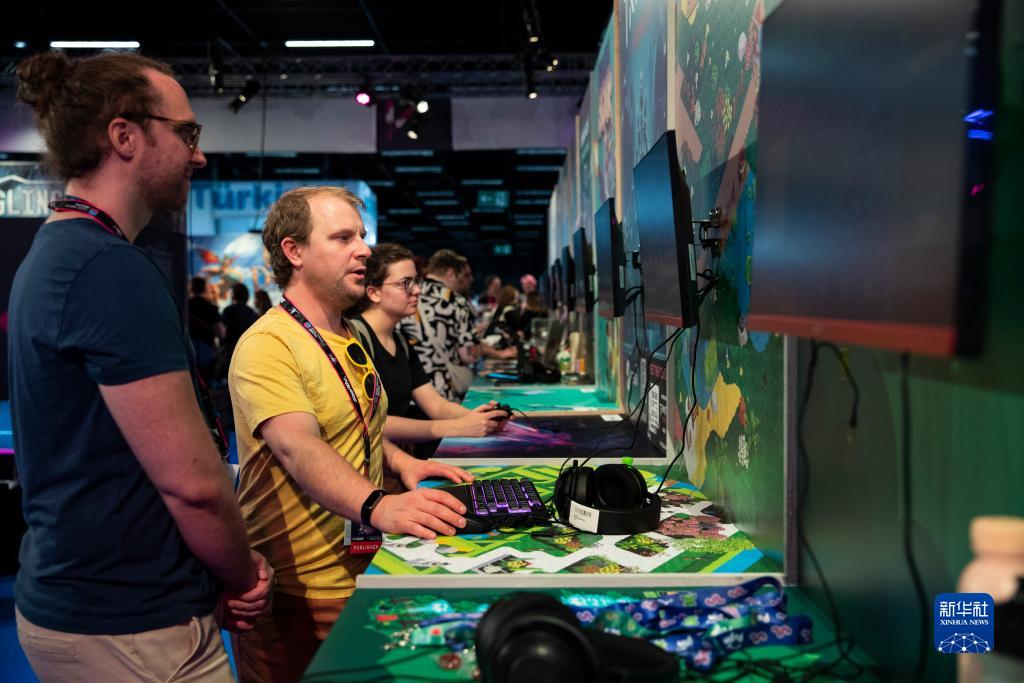 8月23日,人們在德國科隆舉辦的科隆國際游戲展上試玩游戲。新華社記者 張帆 攝