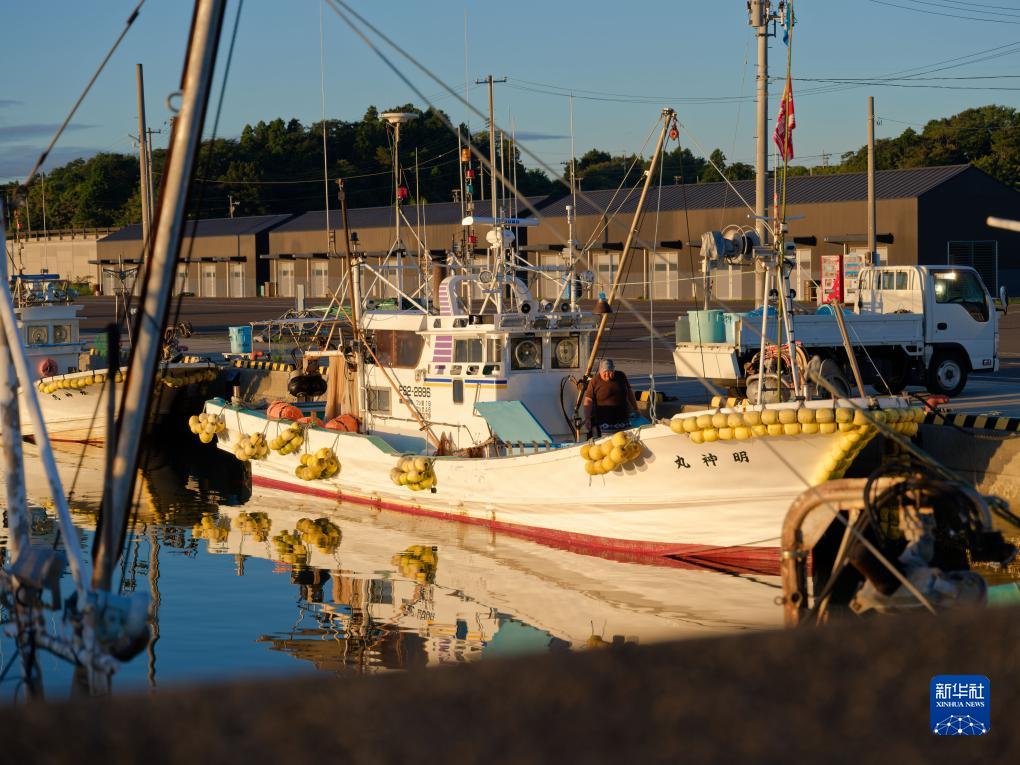 8月23日,在日本福島縣新地町的漁港,漁民捕魚歸來。新華社記者 張笑宇 攝