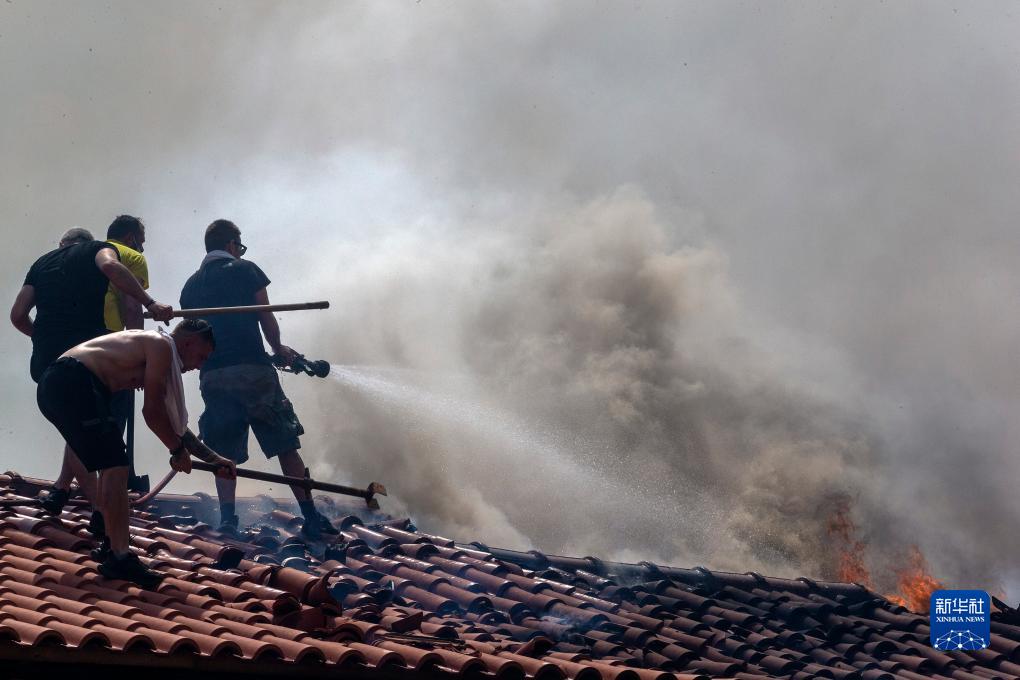 8月23日,人們在希臘雅典附近參與滅火。
