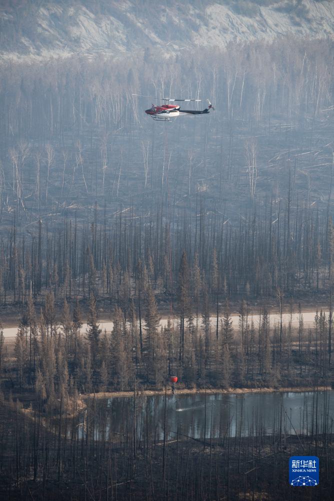 8月21日,一架直升機在加拿大西北地區進行滅火作業。