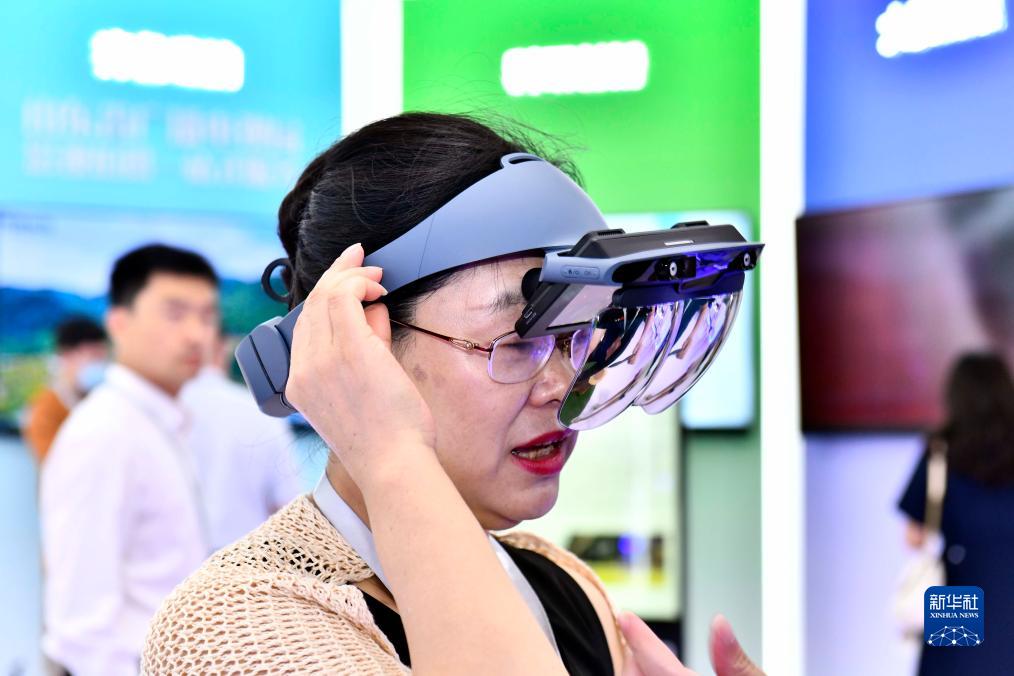 8月24日,在青島召開的2023年中國網絡視聽精品創作峰會上,與會嘉賓在智能視聽沉浸式體驗展區體驗新技術新應用。