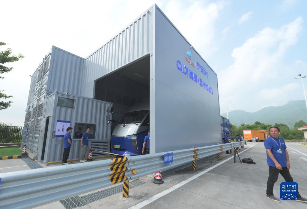 8月24日,採用底部換電技術的卡車在福州繞城高速公路長樂服務區的“騏驥·重卡換電站”換電。