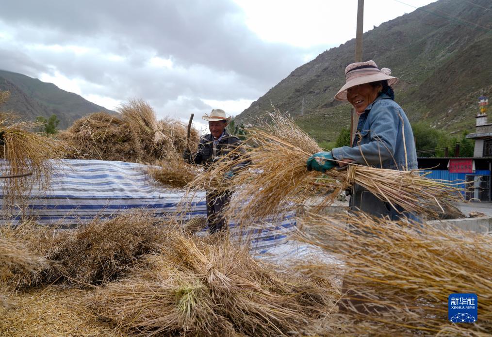 目前,西藏各地進入秋收時節。西藏山南市乃東區的農民在抓緊收穫作物。