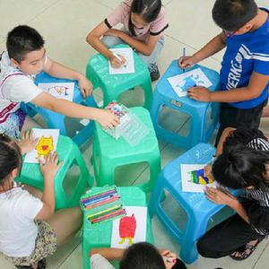 8月24日,在重慶市九龍坡區新民村村委會活動室內,“陽光護航”九龍巾幗志願者小分隊的心理諮詢師志願者通過小游戲為孩子們進行心理疏導。