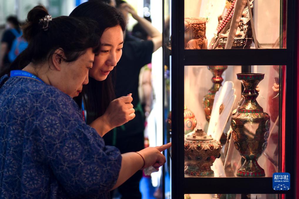 8月24日,參觀者在第十四屆中國—東北亞博覽會現場選購尼泊爾特色商品。