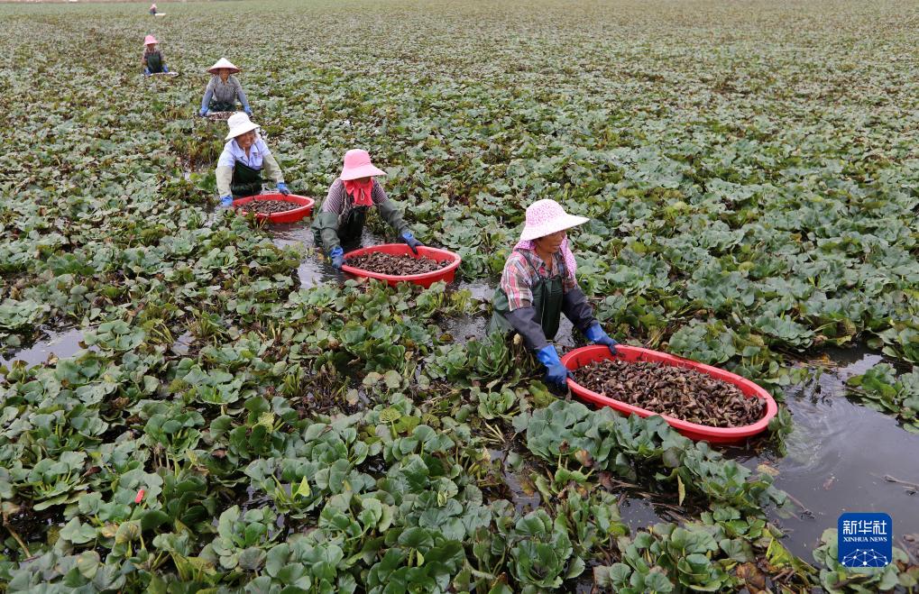 眼下,各地菱角陸續進入採摘期,農民加緊採摘,確保新鮮的菱角及時供應市場。