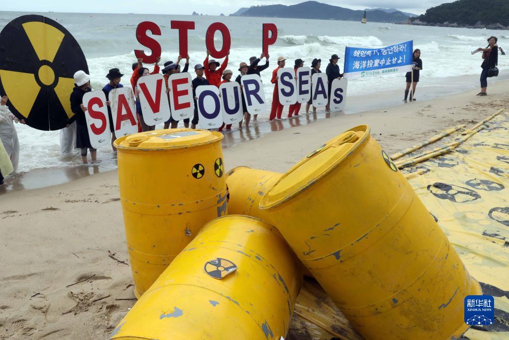 8月24日,韓國市民團體在釜山海雲台海水浴場集會,抗議日本核污染水排海。