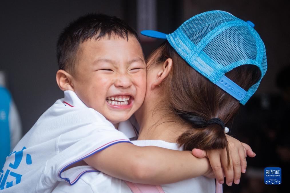 8月24日,留守兒童在活動現場與母親擁抱。新華社記者 伍志尊 攝