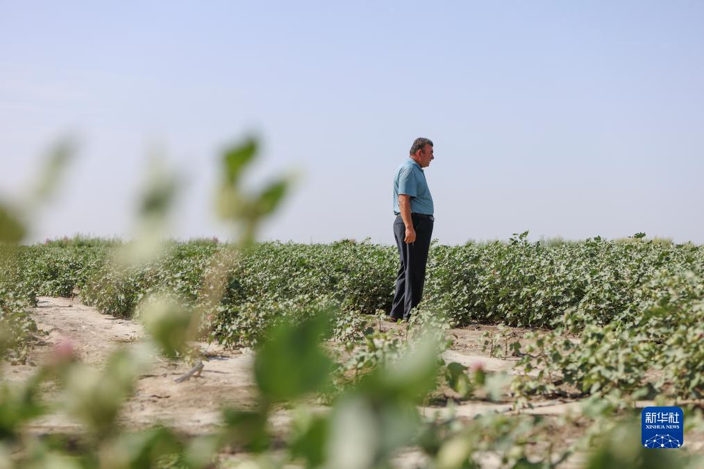 8月,正值棉花坐桃期。經過3個多月的生長,新疆尉犁縣巴西買裏村棉農爾肯·熱衣木家的300多畝棉田,已經是滿眼綠意,棉桃成行。