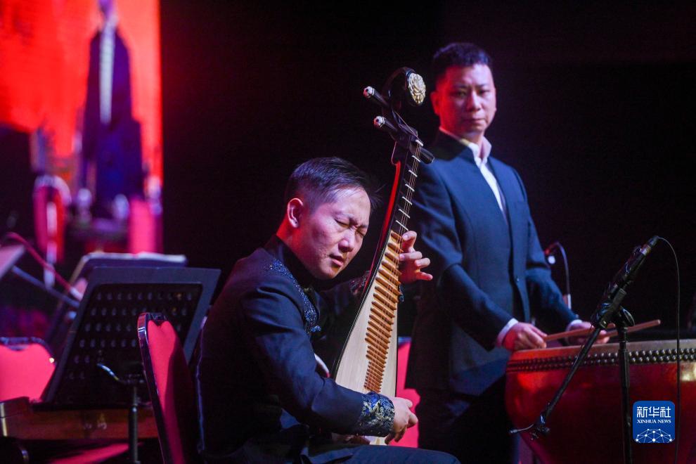 8月24日,在印度尼西亞雅加達太陽城,演奏者表演琵琶獨奏《十面埋伏》。