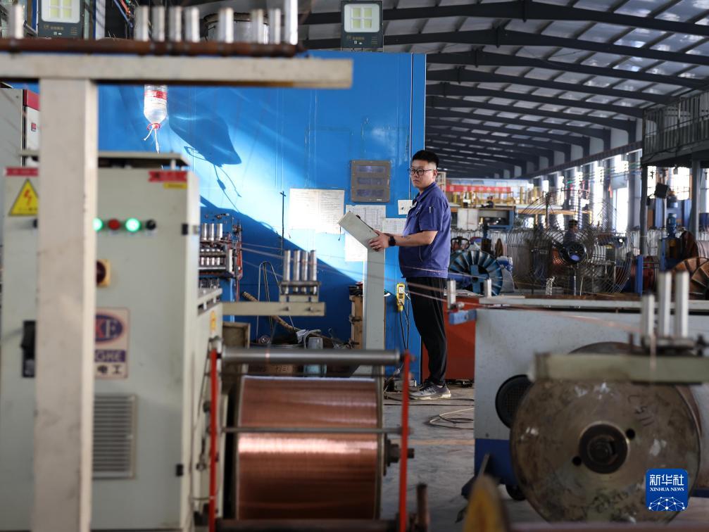 8月24日,工人在河北省邢&市寧晉縣金世紀電纜集團有限公司生産車間工作。