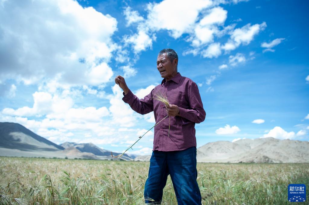 藍天白雲下,微風拂過,一株株青稞露出飽滿的果實。已經見過如此美景40多次的久美心情依然激動:“今年,我還要像以前那樣揮舞鐮刀、收割青稞。這片田見證了我們生活的變化,我對它很有感情。有田在,我心安。”