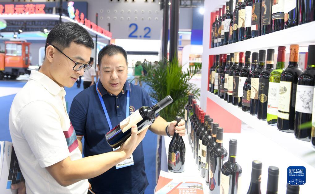 8月25日,市民在廣州博覽會上參觀選購紅酒。