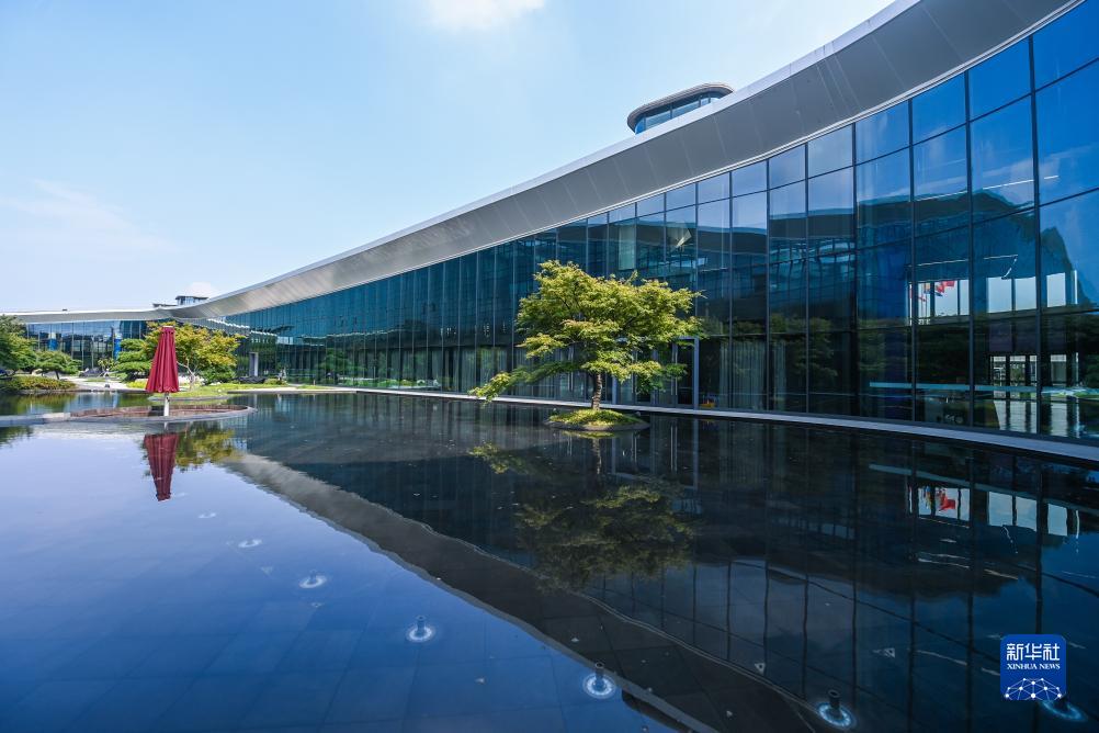 這是8月24日拍攝的杭州富陽水上運動中心的中庭花園,水池中的水來自於循環利用的雨水。新華社記者 徐昱 攝