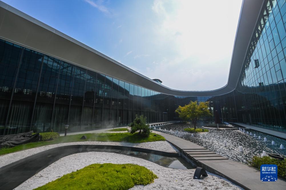 這是8月24日拍攝的杭州富陽水上運動中心的中庭花園,花園裏種植的植物使用回收的雨水進行澆灌。新華社記者 徐昱 攝