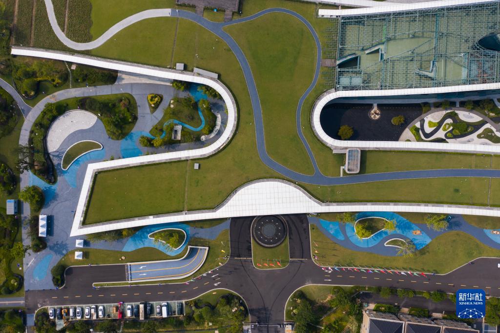 8月24日,空中俯瞰杭州富陽水上運動中心,屋頂被綠植覆蓋(無人機照片)。新華社記者 徐昱 攝
