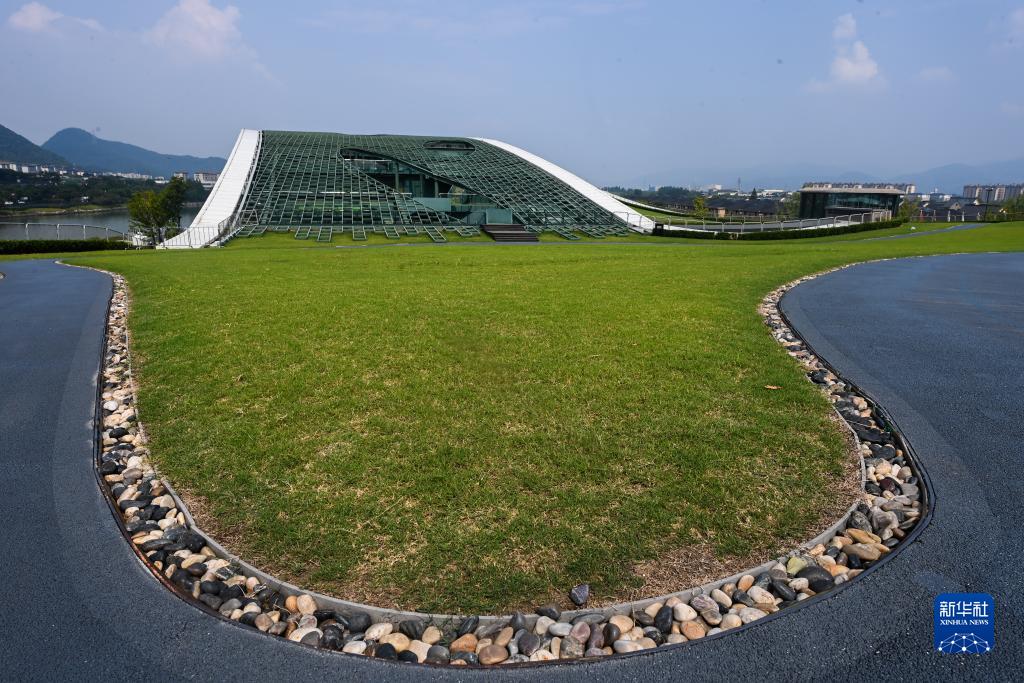 這是8月24日在杭州富陽水上運動中心拍攝的屋頂花園的草坪和步行道,雨水通過鵝卵石過濾下滲,循環利用。新華社記者 徐昱 攝