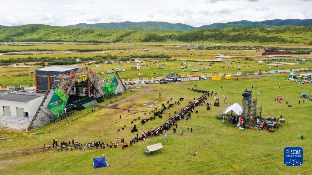 這是8月25日在四川省阿壩藏族羌族自治州紅原縣雅克音樂牧場拍攝的牦牛産奶量比賽現場(無人機照片)。