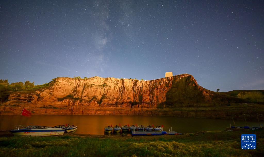 黃河老牛灣位於內蒙古自治區和山西省交界處。夜空下,峽谷兩岸壁立千仞,黃河奔流不息,明長城依山而行,風光壯美。