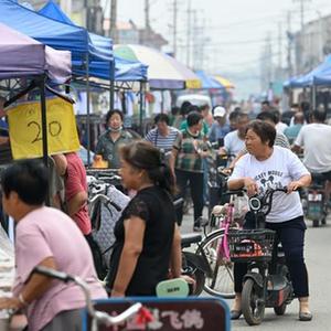 8月25日,在天津市靜海區&頭鎮,前來趕集的村民在大集上購買商品。